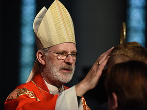 Die Firmung wird gespendet durch die Salbung mit Chrisamöl unter Handauflegung durch den Bischof.
