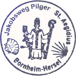 Der Pilgerstempel von Sankt Aegidius Hersel befindet sich im unteren Fach eines Schreibpultes nahe eines Beichtstuhles und ist während der Öffnungszeiten der Kirche erhältlich.