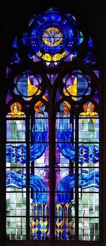 Den Chorraum zieren drei große Bildfenster, die den Betrachter sofort und immer wieder in künstlerischer und in religiöser Hinsicht in ihren Bann ziehen.