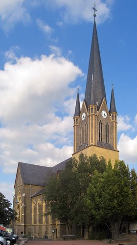 Die alte, in ihren Ursprüngen romanische Pfarrkirche wurde im Jahre 1719 von Grund auf erneuert. Wegen verschiedener baulicher Maßnahmen in den nächsten Jahrzehnten, die das Gotteshaus nicht gerade verschönerten, und wegen Feuchtigkeit und Platzmangel standen Pfarrer und Kirchenvorstand 1890 vor der Frage eines Neubaus. Schließlich entschloß man sich dazu und die alte Tuffsteinkirche wurde 1894 abgetragen. Noch vor Beginn der Arbeiten schlug bei einem Gewitter der Blitz in den Kirchturm und setzte den Helm in Brand. Glücklicherweise konnte der Turm mit Geläut vor den Flammen gerettet werden. Er wurde nach Abriß des Kirchenschiffs in den dann bereits 1895 begonnen Neubau integriert, aufgestockt und mit gelbem Klinker verblendet. Den Plan für den Neubau entwarf Baumeister Langenberg aus Bonn. Da der damalige Pfarrer Albert Haasbach sowohl in finanzieller Hinsicht als auch durch tatkräftige Hilfe seitens der Pfarrgemeinde eine enorme Unterstützung fand, konnte Weihbischof Hermann Joseph Schmitz bereits am 02. Oktober 1896 die im neugotischen Stil erbaute Pfarrkirche konsekrieren.