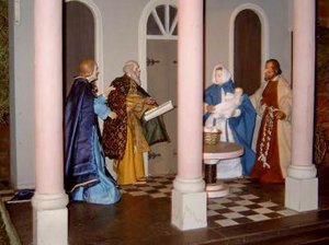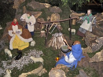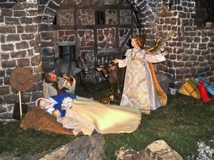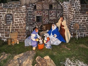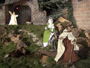 Kurz vor Weihnachten weicht der Altartisch, auf dem die Adventsszenen aufgebaut werden, der weit ausladenden Landschaft der Weihnachtskrippe. An Heiligabend beginnt alles mit der Verkündigung der Geburt an die Hirten, die noch recht verschlafen sind. Am ersten Weihnachtstag dann die Anbetung der Hirten an der Krippe. 2003 neu aufgenommen und für manchen gewöhnungsbedürftig ist die Badeszene, in der das Jesuskind gebadet wird - ein Motiv, das insbesondere in der Ostkirche zu jeder Darstellung der Geburt Christi gehört und das die Menschennatur des Sohnes Gottes unterstreicht.